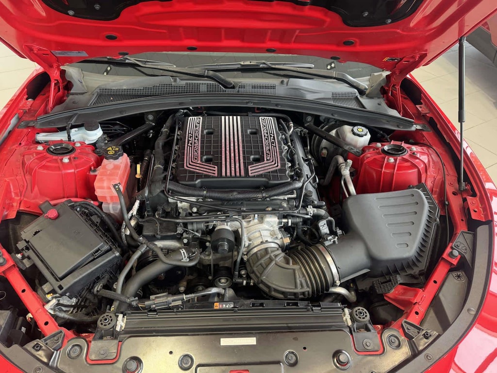 Heated Driver Seat, Cooled Driver Seat, Back-Up Camera, Premium Sound System, Satellite Radio Chevrolet ZL1 with Red Hot exterior and Jet Black with Red accents interior features a 8 Cylinder Engine with 650 HP at 6400 RPM*.